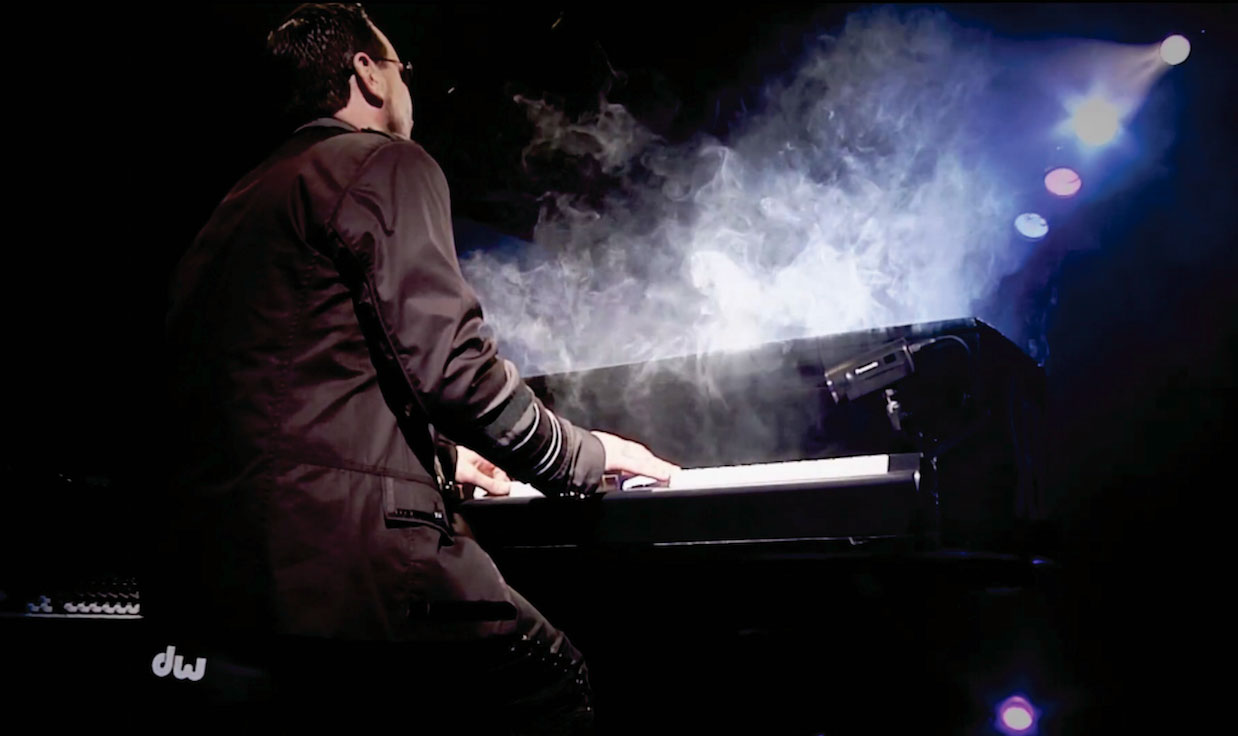 En tant que pianiste solo, il peut jouer sur un piano à queue noir ou sur son propre piano à queue de 5 pieds, monté sur un support hydraulique personnalisé qui lui permet de jouer debout. Une machine à fumée peut également être insérée dans la coque du piano, ajoutant un élément visuel supplémentaire incroyable au spectacle et donnant l'illusion d'un piano fumant ! Avec ce spectacle haut de gamme, il a joué à guichets fermés dans des lieux tels que le Downey Theatre, l'OC Pavilion et le Brixton Theatre, pour n'en citer que quelques-uns, et a ouvert pour des artistes tels que les Motels avec Martha Davis, Berlin, Missing Persons, Ambrosia, Dramarama et Greatwhite.