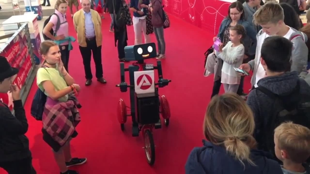 Aimé par les publics de tous âges, notre robot interactif déambulatoire se connecte rapidement avec les enfants et les dames et engage la conversation avec les messieurs, en particulier ceux intéressés par l'informatique. Les fonctionnalités supplémentaires comprennent des yeux et une bouche animés à LED, un affichage de messages, une tête mobile et un vélo. S'il n'y a pas assez d'espace disponible pour que notre robot puisse faire du vélo, il peut être placé sur une table ou un support. De plus, notre robot déambulatoire personnalisé peut être le moyen parfait de promouvoir votre marque.