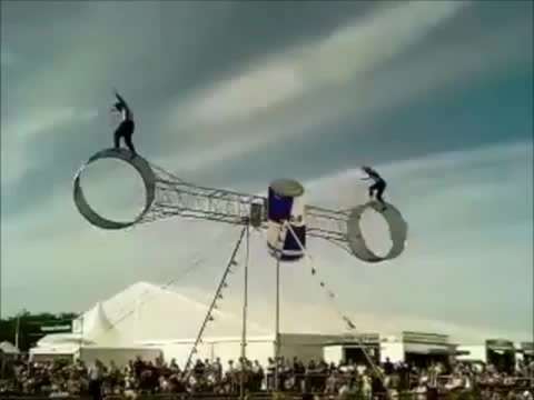 Considéré comme l'un des numéros les plus prestigieux du circuit aujourd'hui, il s'agit de la seule Triple Roue connue à ce jour, une structure de 11 mètres qui tourne sur un axe central avec une cage à chaque extrémité axiale. Les artistes entrent dans les cages et commencent à faire tourner la roue à une vitesse de plus en plus rapide, marchant puis courant à l'intérieur, puis à l'extérieur des cages.