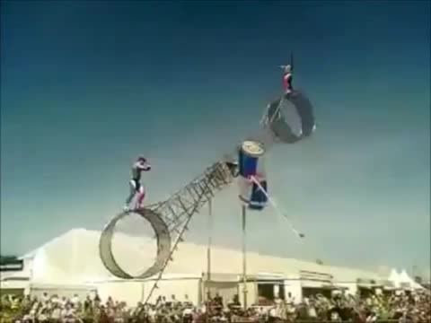 Ceci est l'un des meilleurs numéros de cascade aérienne au monde, une démonstration de double et triple roue de la mort se tenant à une hauteur spectaculaire de 50 pieds, visible de tous les coins de votre site d'événement. Cette démonstration en arène attire énormément de monde et captivera complètement vos visiteurs. Cet acte unique apparaît en Grande-Bretagne pour la troisième année consécutive sur la scène du divertissement en plein air, après ses débuts à l'ouverture du Festival de Glastonbury en 1995.