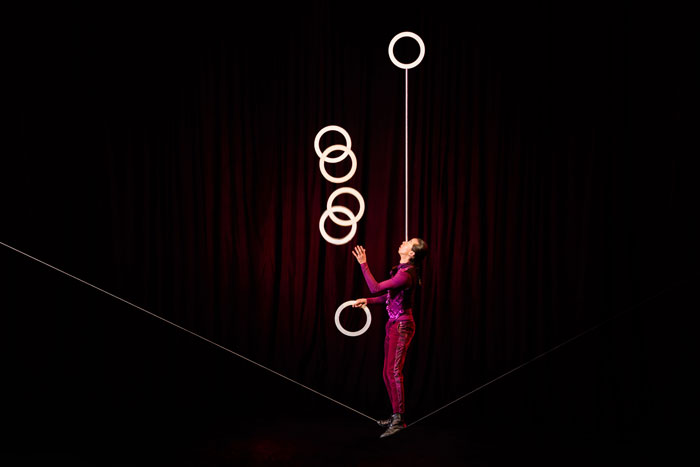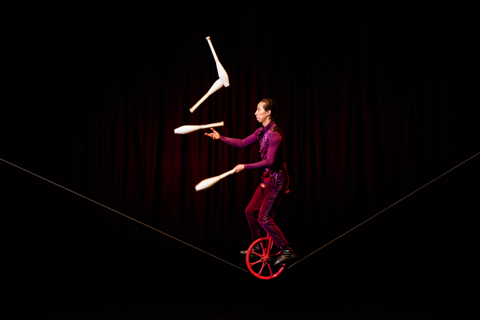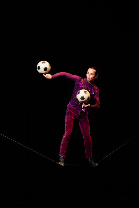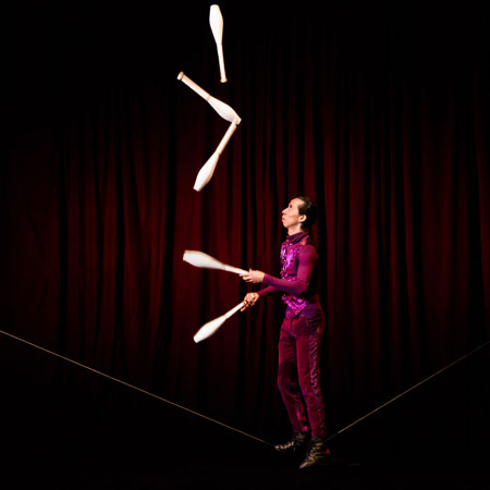 En plus d'être un brillant marcheur sur le fil lâche, il réalise une large gamme de tours de jonglerie avec des accessoires tels que des massues, des anneaux, des balles et même des ballons de football. Son superbe numéro de cirque est complété par une variété de superbes costumes qui peuvent bien sûr être adaptés aux thèmes spécifiques des événements si nécessaire.