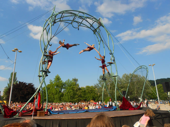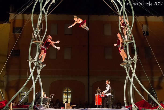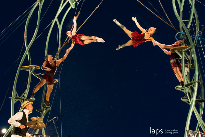 Cet acte peut être divisé en spectacles plus petits ou en numéros individuels selon les besoins du client. La même équipe propose également un spectacle de cirque aérien des années 1930 à plus petite échelle ici.