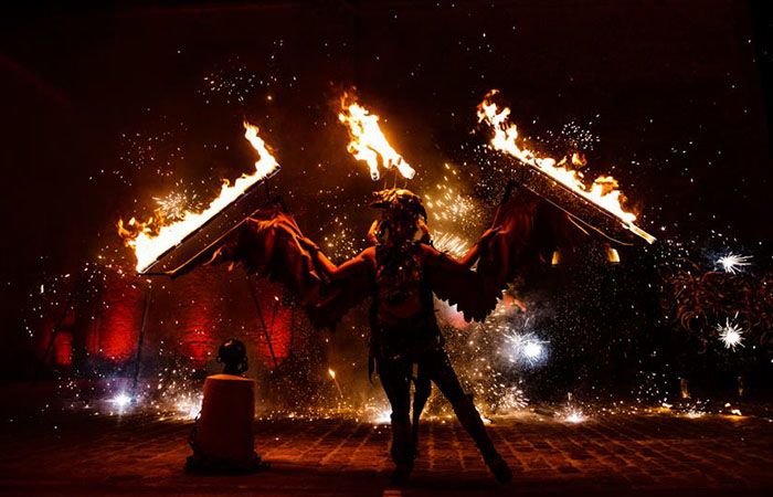 Un fantastique spectacle de fantaisie de feu qui comprend des danseurs acrobatiques, une chorégraphie, une mise en scène, des jongleurs techniques, des acrobaties aériennes, des pyrotechnies, des structures de feu, des manipulateurs d'ombres et de magnifiques ailes enflammées. Nos performeurs de feu se produisent généralement pendant 30 minutes et peuvent s'adapter à n'importe quel thème d'événement ou de rassemblement pour garantir aux invités un divertissement de classe mondiale qu'ils n'oublieront jamais.