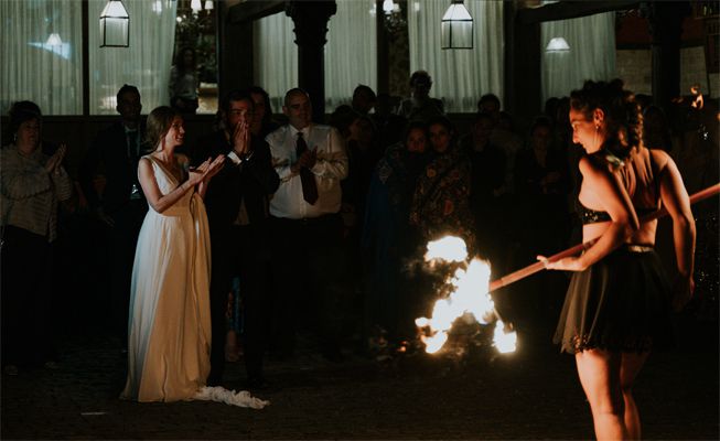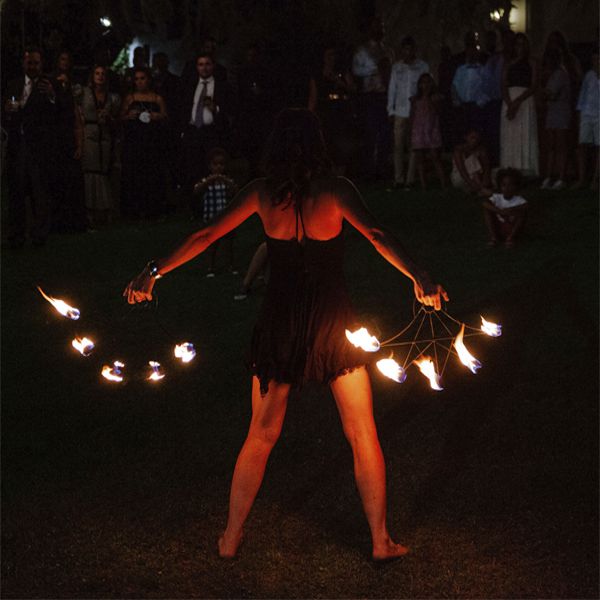 Cette performance de feu peut inclure différents appareils de feu, pour surprendre les invités juste quand ils pensent avoir déjà tout vu.