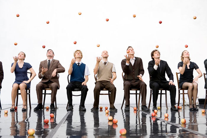 Incluant la jonglerie avec des pommes, des performances d'acteurs professionnels et une chorégraphie captivante, notre spectacle de jonglerie comprend une bande sonore de chansons célèbres, de Tammy Wynette à Bach. En se produisant tous en parfaite harmonie, le public est plongé dans les mondes de personnages qui tentent désespérément de maintenir une façade respectable tout en se déchirant en dessous de la surface.