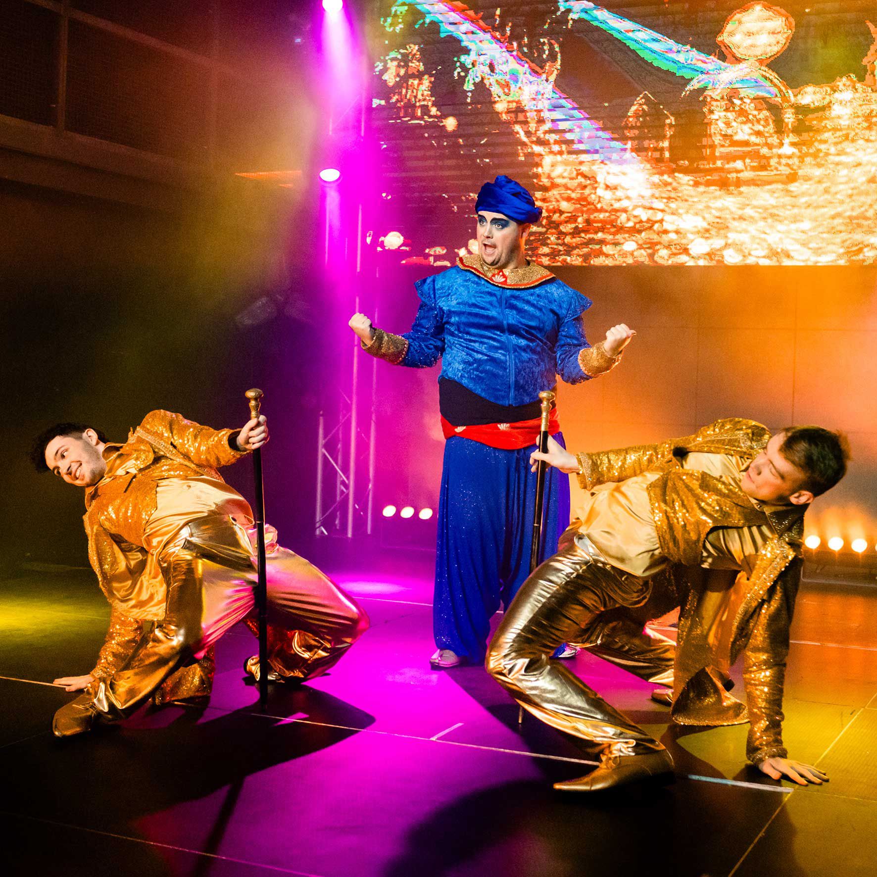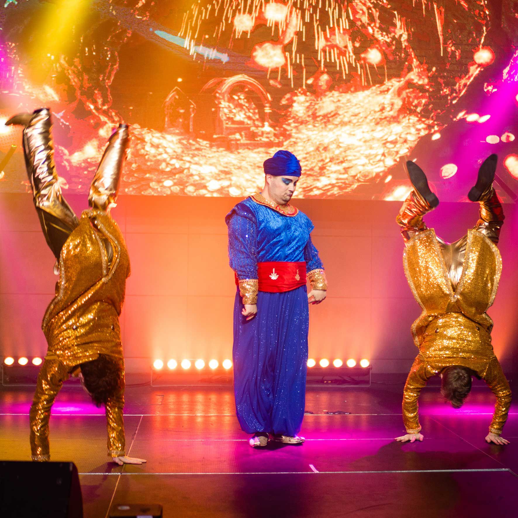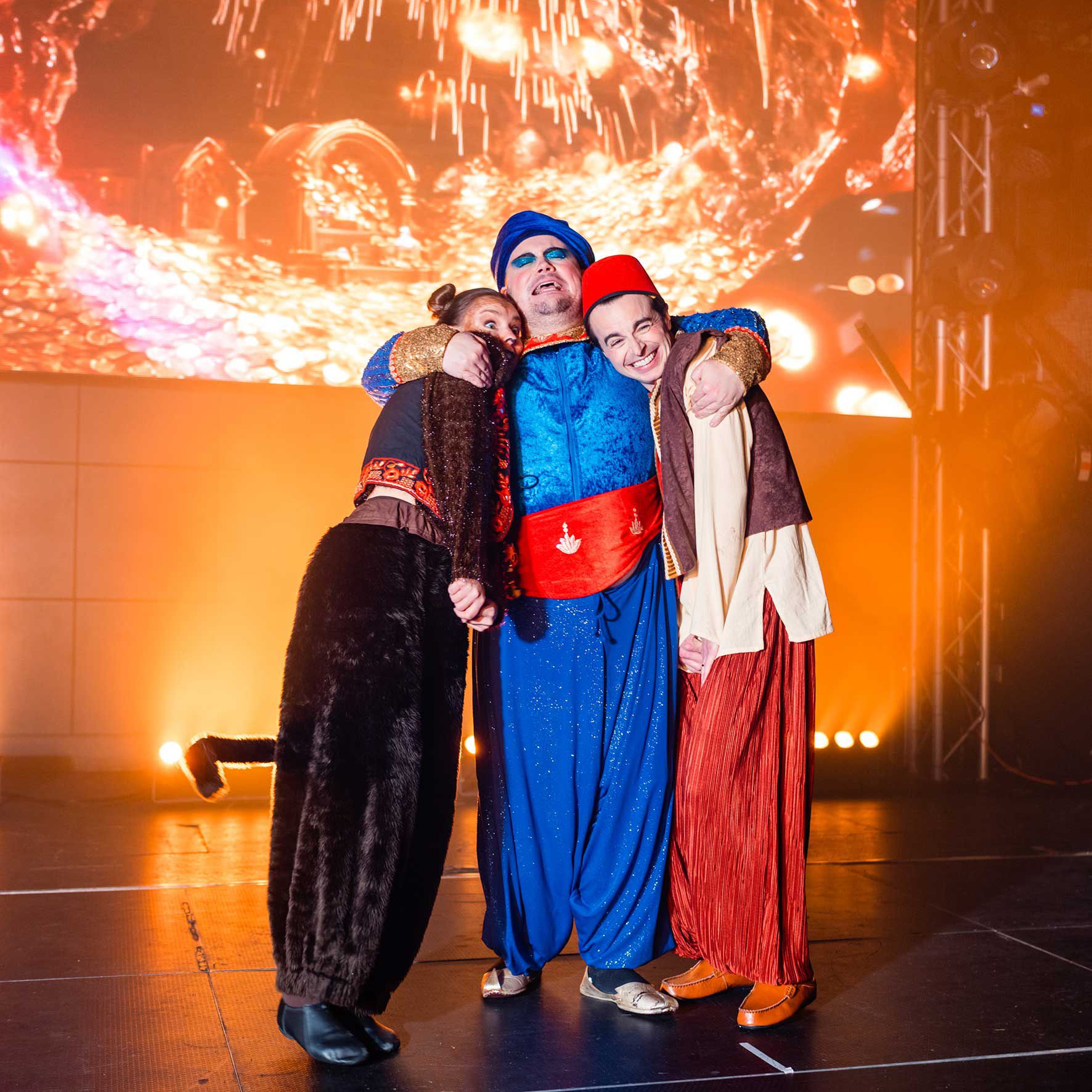 Disponible mondialement, réservez un spectacle Aladdin en tant que production complète de 12 artistes ou un mini-spectacle, parfait pour les événements familiaux avec ce divertissement haute énergie.