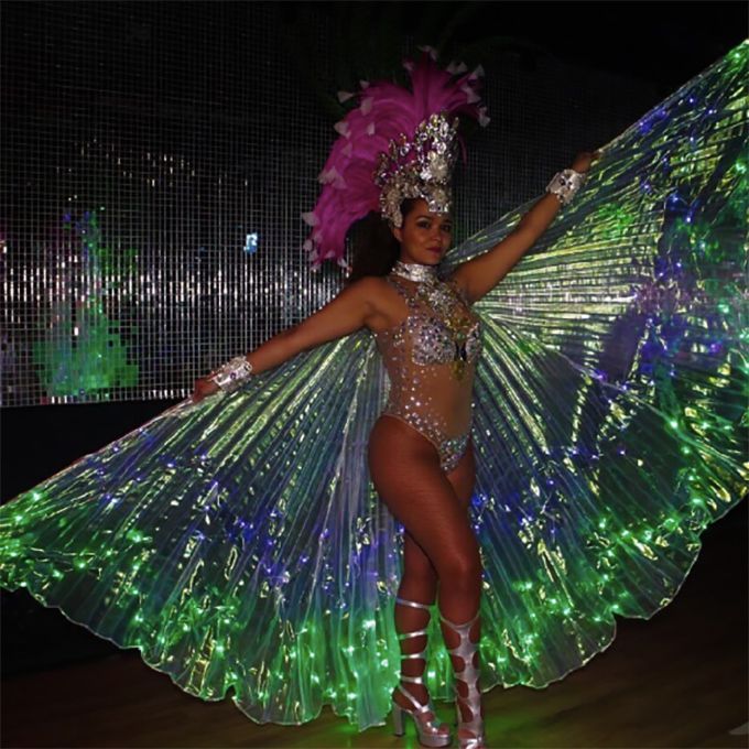Les artistes captivants du carnaval de Rio offrent des rencontres avec des échassiers aux thèmes brésiliens, des artistes de poi LED et des danseurs de feu pour ravir les invités.