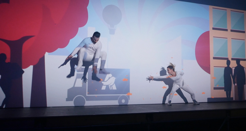 Une façon originale de raconter une histoire ou de révéler un logo, les spectacles de danse en mapping vidéo sont le mélange parfait de la dernière technologie et de la narration. Exécutés par deux (ou plus) danseurs, ces spectacles de révélation de logo sont l'option incontournable pour les événements d'entreprise, les lancements de produits, les conférences, les salons professionnels, etc.