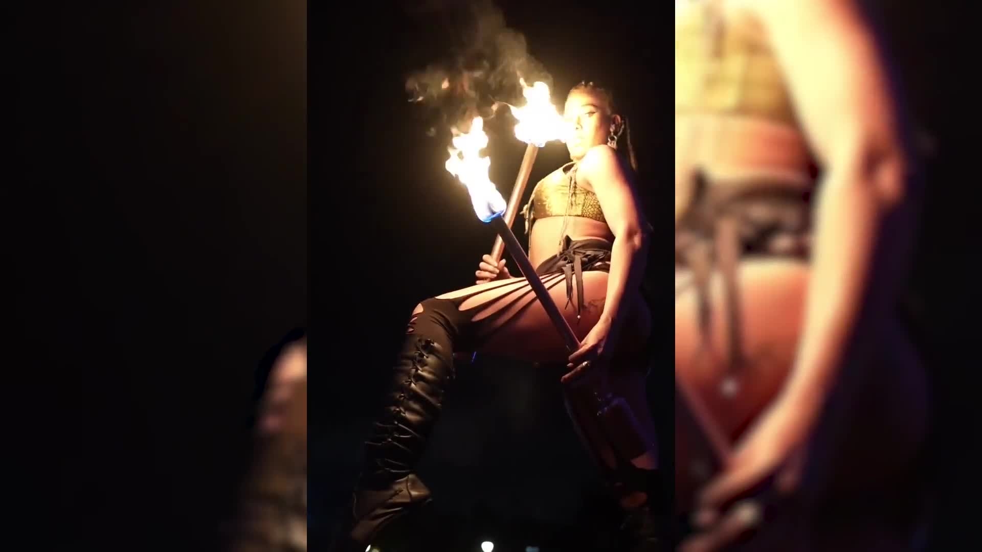 Nos spectacles pyrotechniques époustouflants incluent une gamme d'accessoires et d'effets de feu tels que des bâtons de dragon, des fouets enflammés, des poi, du cracheur de feu et d'autres compétences