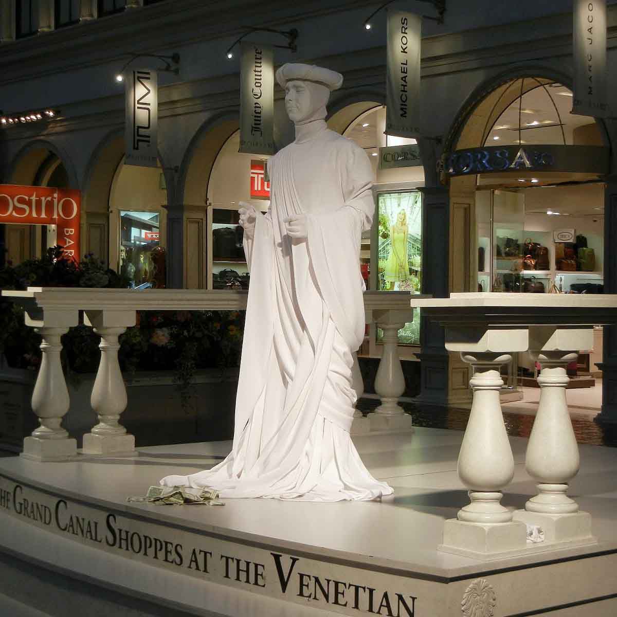 Notre statue vivante a plus de vingt ans d'expérience au célèbre 'Hôtel Vénitien' sur le Strip de Las Vegas.