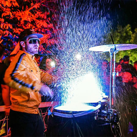 Une performance visuellement captivante, ce spectacle de tambours aquatiques est un spectacle qui vaut vraiment la peine d'être vu! En combinant sa passion pour la percussion avec des lumières LED et de l'eau, ce musicien unique ajoute un élément visuel spectaculaire à toute occasion.