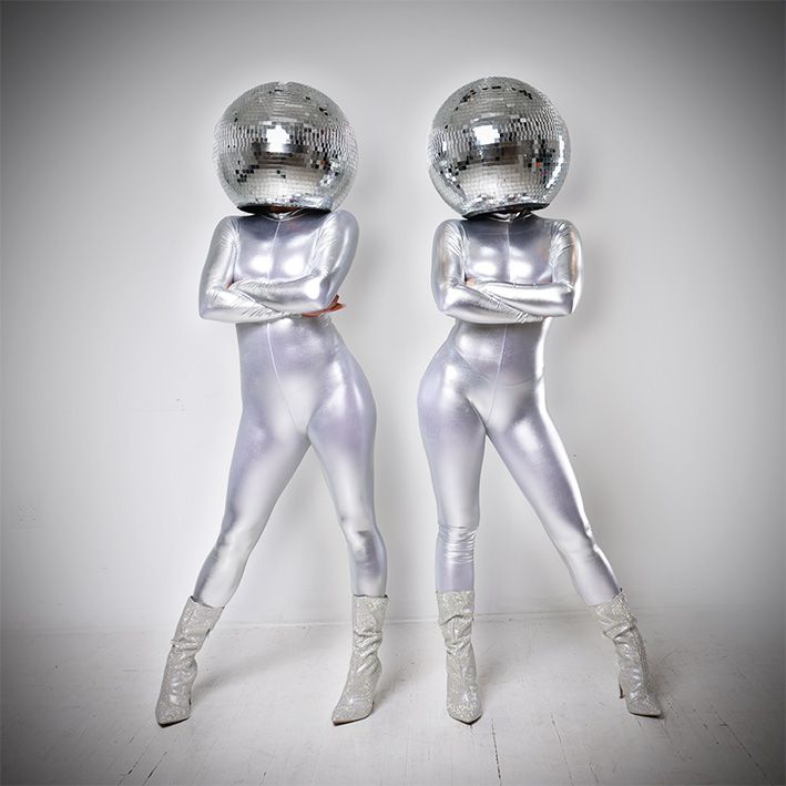 Engagez des hôtesses à tête de boule à facettes géantes qui peuvent poser pour des photos, interagir avec les invités et offrir une danse d'ambiance.