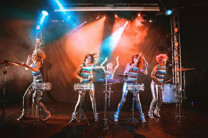 Avec une présence scénique vivace, un physique avantageux, des garde-robes remplies de tenues de scène élégantes et de grands talents percussifs, le groupe de batterie tout féminin est un excellent choix pour une grande variété d'événements, garantissant que le public sera émerveillé par leur spectacle musical en direct. Les percussionnistes féminines sont capables d'adapter leur performance à différents types d'événements et de thèmes, allant des festivals de rue aux spectacles d'entreprise haut de gamme.