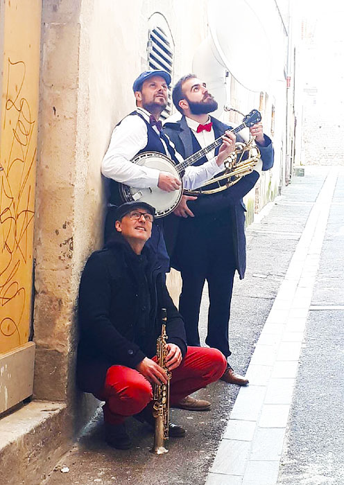 Composé de trois musiciens confirmés, notre Trio de Jazz de La Nouvelle-Orléans en déambulation se compose de la tuba, du saxophone, du banjo et des voix. Cette instrumentation entièrement acoustique permet au trio de jouer de la musique ambulante à leur guise. Parfaitement adapté pour se promener dans les rues, au bord des rivières et dans les bars branchés de Bordeaux, le groupe ambulant est disponible pour des événements partout en France et à l'international.