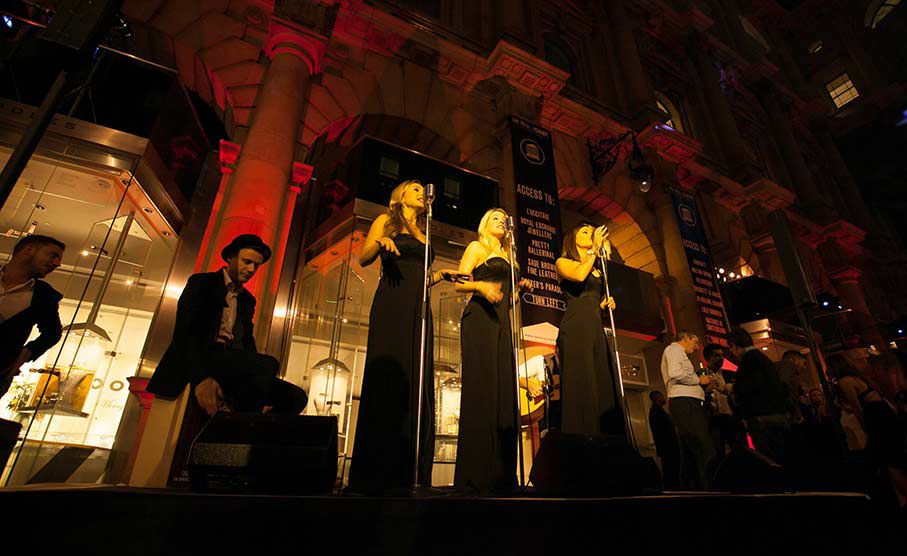 Ce trio de chant moderne basé à Londres fusionne les sons du jazz et de la pop avec une touche de style de barbier des années 1940. Ils réinventent les tubes en ajoutant une étincelle vintage au son avec leurs harmonies de style barbershop.