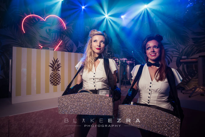 Vêtues de costumes à sequins accrocheurs ou vintage, les Usherettes ont des kits de plateaux scintillants prêts à être utilisés pour peindre vos invités avec des paillettes.