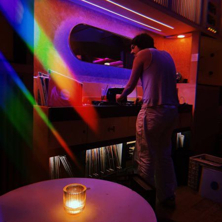 Cette DJ de musique électronique se spécialise dans le vinyle, n'utilisant que des platines vintage et une table de mixage DJ analogique personnalisée pour offrir une expérience musicale live unique.