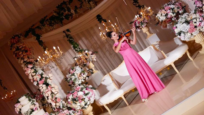 Notre Violoniste Femme à Abu Dhabi est formée de manière classique avec une maîtrise en musique. Elle a de l'expérience de travail dans divers orchestres, ensembles et en tant que soliste partout en Europe et en Chine, ainsi que sur des navires de croisière américains. Cette violoniste élégante et très glamour est originaire de Pologne et est maintenant basée à Abu Dhabi. Depuis qu'elle est au Moyen-Orient, elle est une violoniste féminine très demandée pour une variété d'événements allant de dîners privés glamour pour les VIP de Louis Vuitton à des mariages royaux, dont beaucoup de mariages émiratis.