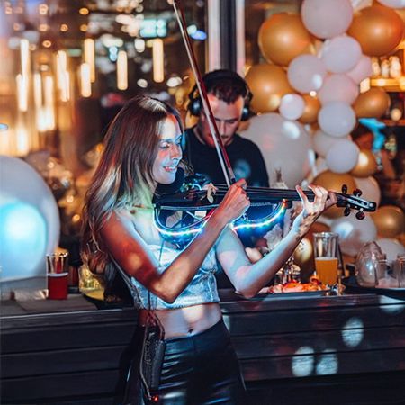 Jouant en tant que violoniste solo et chanteuse ou aux côtés d'un DJ, elle crée une atmosphère sophistiquée et énergique pour les clubs et les événements d'entreprise.