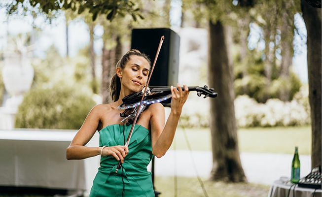 Spécialisée dans les mariages et les réceptions de luxe, elle propose du violon et des chants en direct pour créer une expérience de cérémonie et de cocktail personnalisée