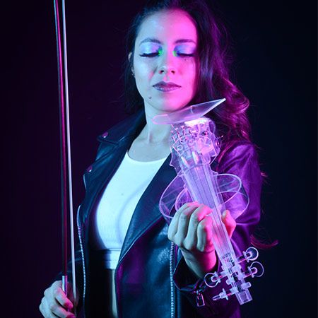 Avec le choix d'un violon électrique LED futuriste ou d'une option acoustique sophistiquée, notre violoniste féminine peut s'adapter à de nombreux styles d'événements différents.