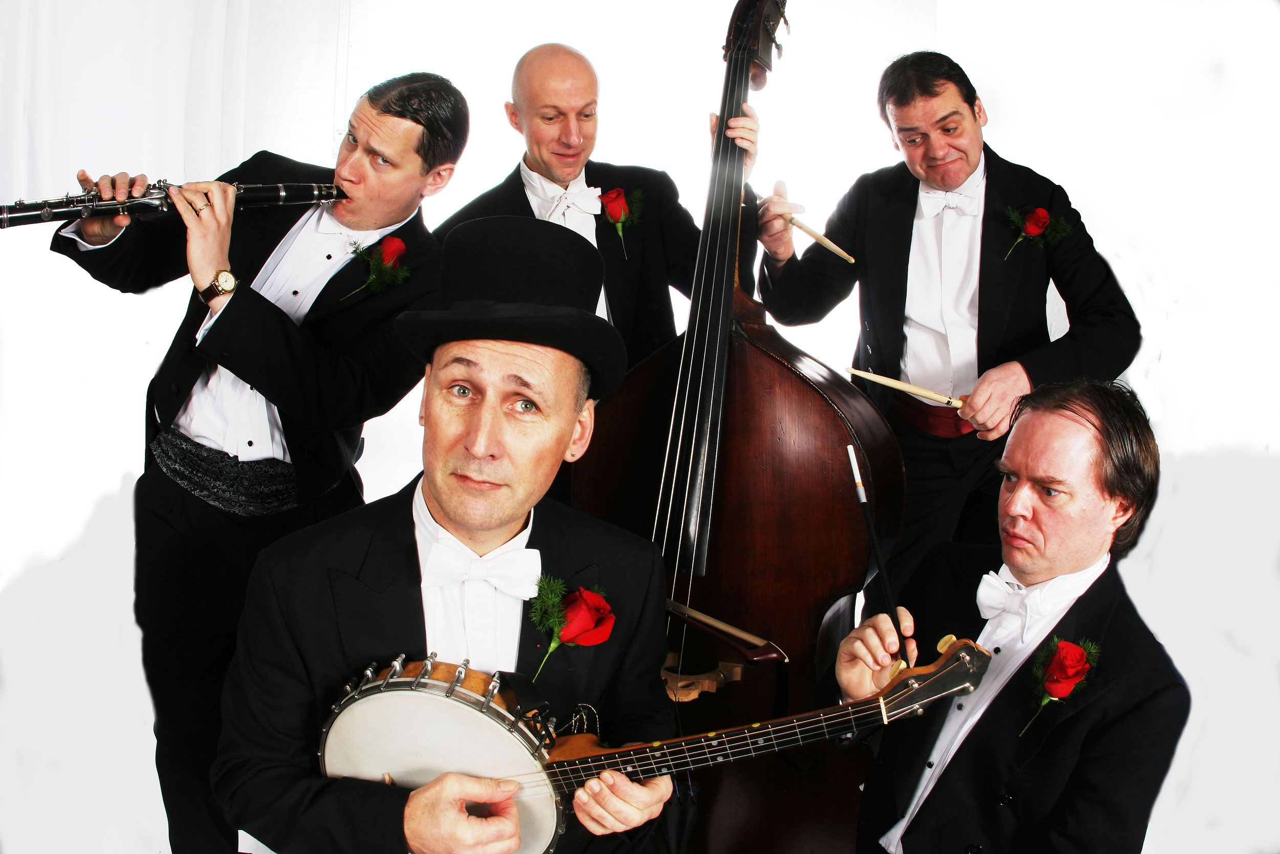 This stylish Great Gatsby band will transport you and your guests back to a time when the jitterbug was scandalous, alcohol was prohibited, speakeasies and mob violence were the norm, bob haired flappers girls danced the night away and a good time was had by all the reckless and young at heart! Performing 1920s and 30s jazz in costume and character this band brings a fun-loving feel to weddings, corporate events and special occasions. Their impressive repertoire of vintage jazz includes favourites like ‘The Charleston’, ‘Happy Feet’, ‘Come Fly With Me’ and ‘I’m In The Mood For Love’ ensuring there is something for everyone to dance the night away too. To vary the music and keep everyone entertained and on the dance floor they can also include music from the 40s and 50s. They band can perform as a duo, trio or quartet making them the perfect choice for a range of events. They can also perform with the addition of a troupe of elegant flapper girls who will perform, get the party starting on the dance floor and teach you and your guests a step or two!