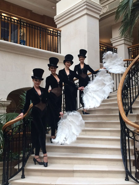 A chic dance show bursting with classic glamour, our professional dancers will delight guests with their Fred Astaire inspired performance to ‘Puttin’ On The Ritz’, before switching the pace up with a Bob Fossie style routine performed to ‘All That Jazz’. Dressed in plush velvet top hats and tailcoats, this showgirl dance troupe put on a spectacular show that will not soon be forgotten.