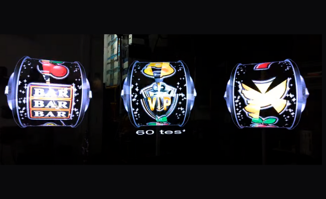 Book this holographic slot machine that captivates audiences with floating 3D reels as an unforgettable futuristic entertainment feature