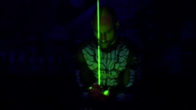 Crafting a unique experience fusing art and technology, our Laserman constructs a virtual world made from laser beams, futuristic interfaces, plasma sparkles, and neuronal networks, taking audiences on a dynamic ride through a futuristic realm with a black hole finale.