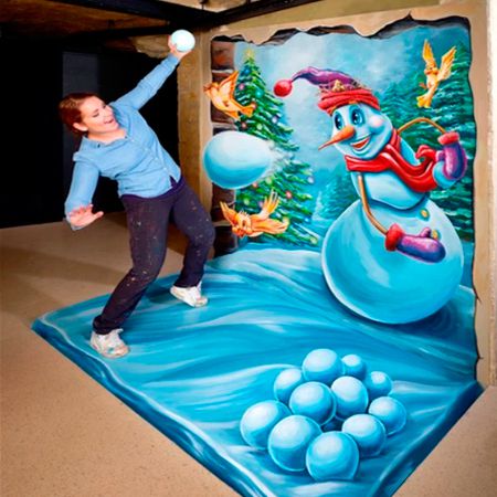 Our muralist plays with optic illusions and can incorporate elements from the surrounding area into the design, such as floors or adjacent walls