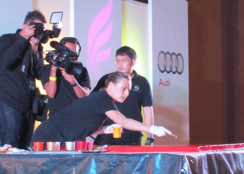 Singapore based painter Delphine works in complete improvisation or according to sketches previously submitted to the client, using her ability to capture aesthetically the essence of the product or theme which you wish to highlight during the event.