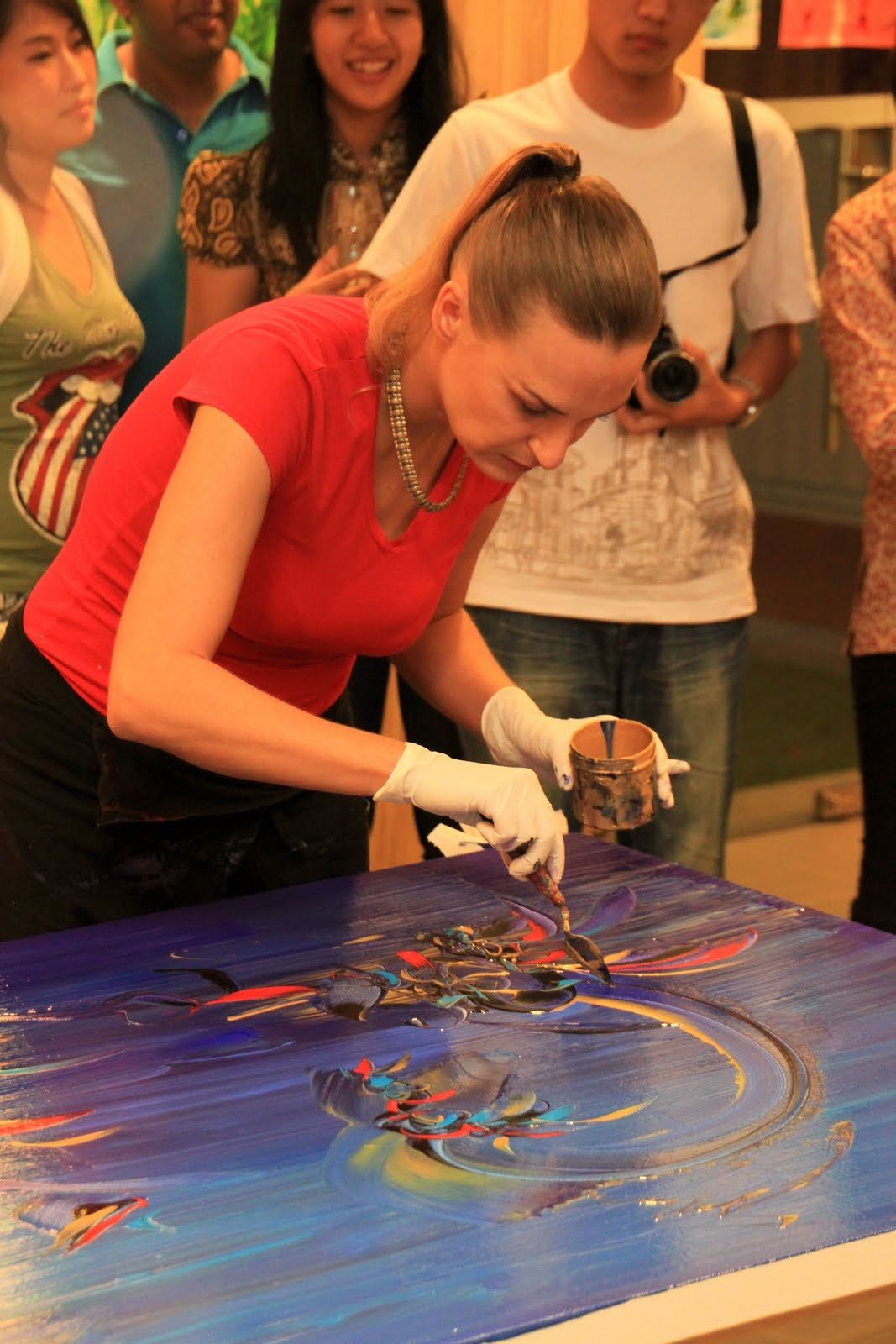 Thrills audiences by creating spectacular art on large-scale canvasses