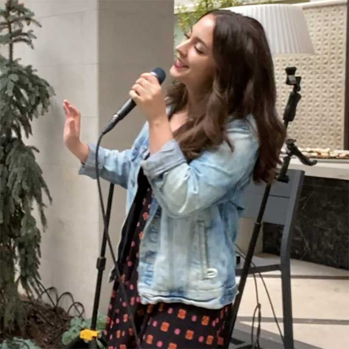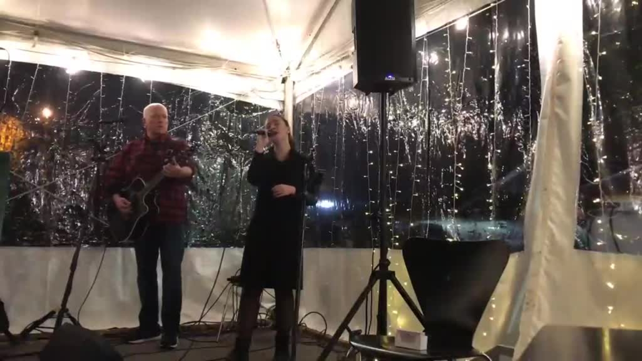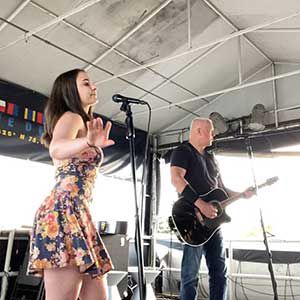 Led by a female vocalist, she is accompanied by a guitarist who also includes harmonica and mandolin as part of the backing music
