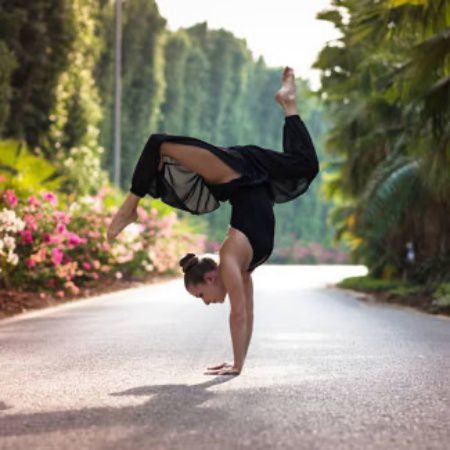A highly skilled and versatile acrobat, this performer excels in multiple disciplines and is a regular competitor in pole dancing competitions