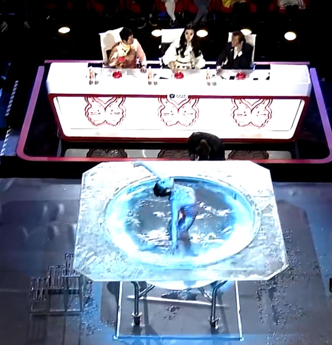 Her amazing aqua acrobatic act performed inside a giant water bowl wowed audiences across China with its appearance on some of the country’s best-loved talent shows and across major national TV programmes. Combining impressive demonstrations of contortion, agility and strength her water bowl act provides a visually stunning spectacle - complete with ambient up lighting - that would perfectly compliment water themed events, private parties, corporate events and product launches.