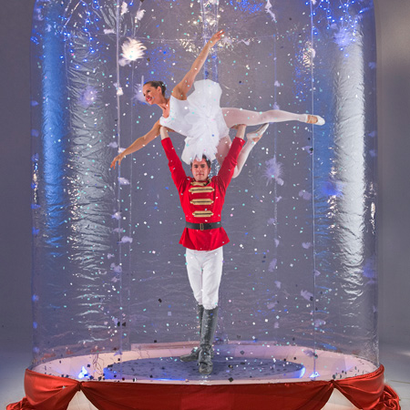Set the scene at your event with our beautiful and original acrobats in winter globe show, guaranteed to captivate audiences.