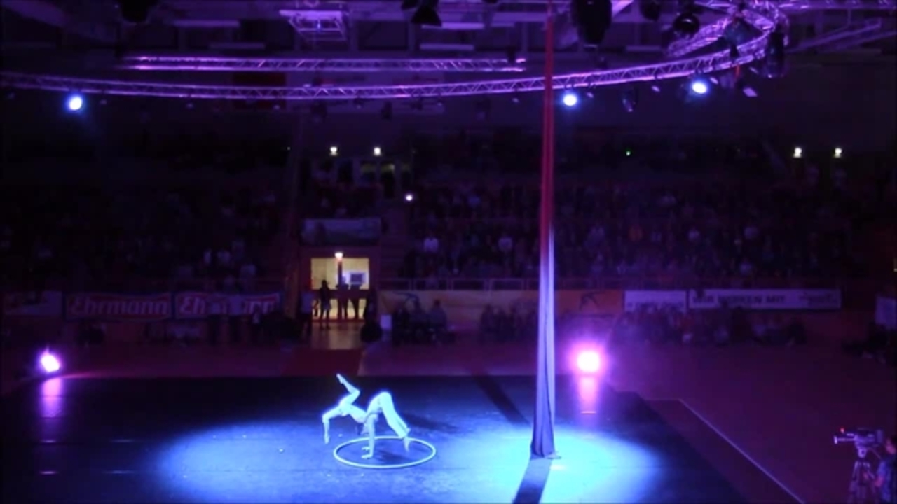 This multitalented acrobatic couple offers ground and aerial solo and duo performances. All shows be fully customised to suit your requirements. Performance length, music and outfits can also be adapted to special requests. It is also possible to combine different acrobatic disciplines: German Wheel, Cyr Wheel, Aerial Silks, Aerial Hoop, Partner acrobatics, Handbalancing and Pole Dance!