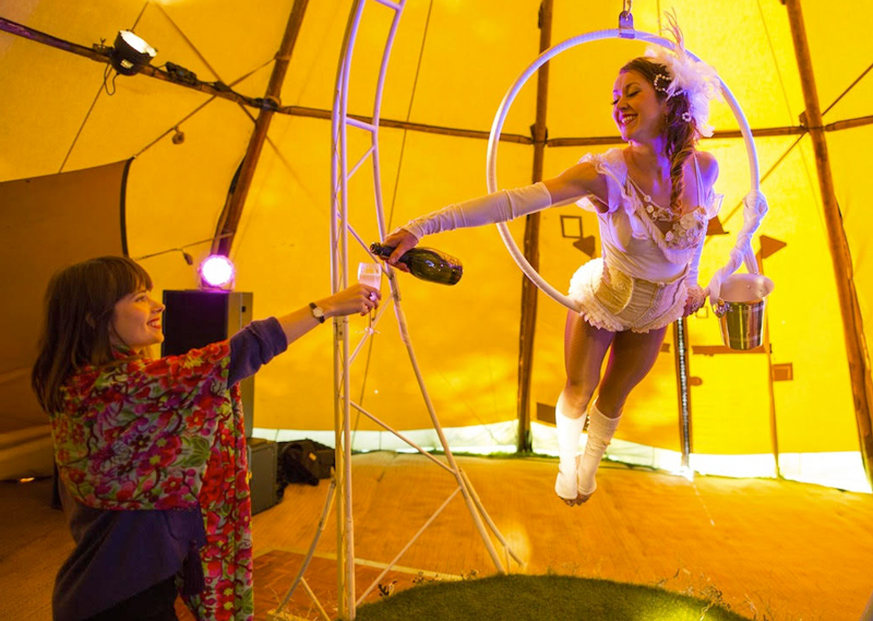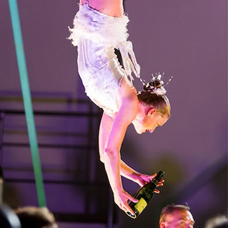 Add a unique element to your celebration with these Aerial Bartenders, sophisticated champagne aerialists who will ensure all glasses are always full.