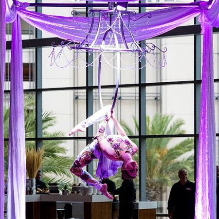 Based in San Diego, the aerial chandelier is perfect for galas, activations, receptions, corporate events and private parties in California
