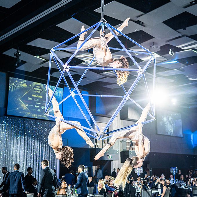 Based in Canada, these aerialists are available to bring their impressive cirque performances to events globally