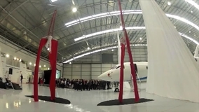 Aerial champagne pouring as part of an evening of aerial dance and circus.
