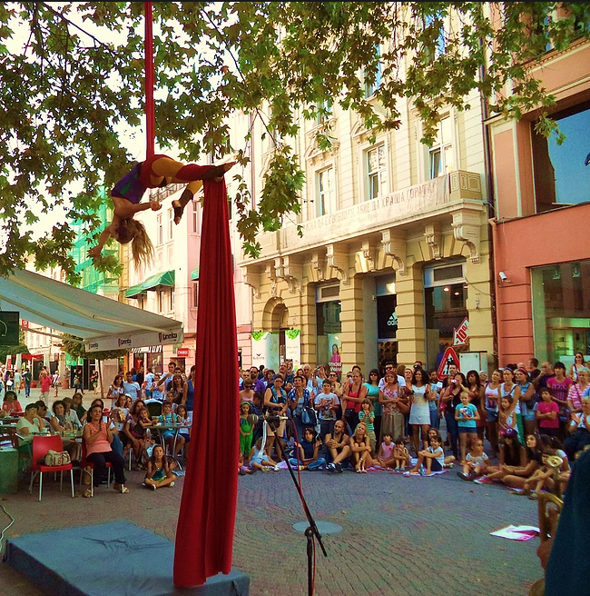 Academically trained, this Greek aerial artist specialised in aerial silks and trapeze in Belgium. She also trained in contemporary dance in order to provide her performances with diverse elements. Her studies also took her to Paris and Argentina, where our aerialist refined her aerial contemporary dance technique and practised both vertical dance and bungee belts.