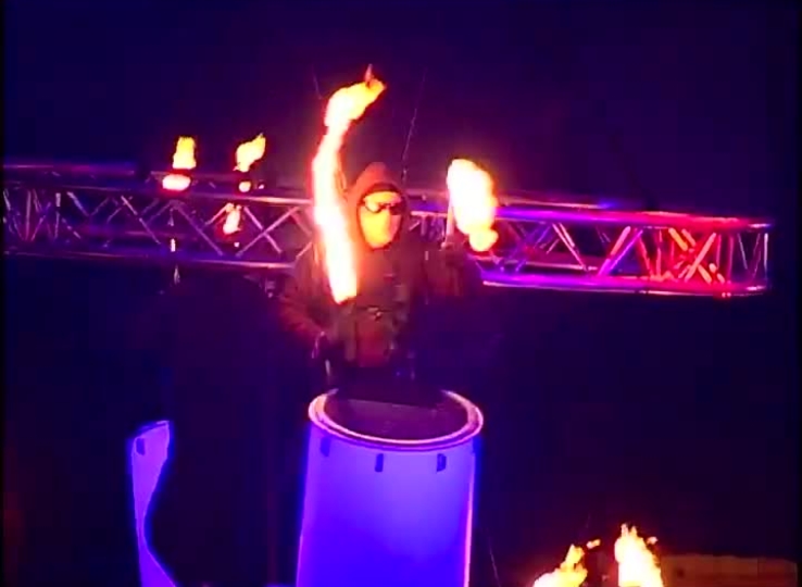 The show demonstrates outstanding stage designs, complete with computerised 3D light design, which visualises rhythm and percussion with LED lasers, fire and more.