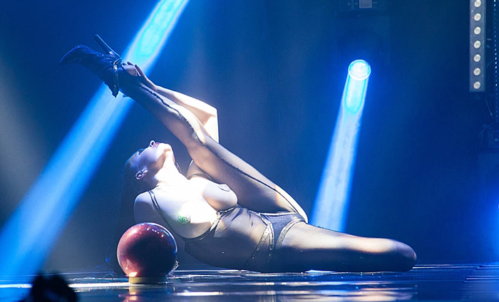 Not for the faint hearted, the erotic show is features partial nudity and includes an exhilarating mid-air aerial hoop act followed by a sensual ball act with rhythmic gymnastics. The erotic show is very sophisticated and tasteful adult entertainment laden with teasing, passion, energy and elegance.