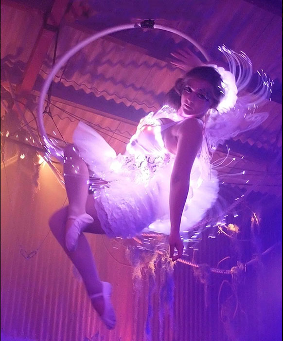 World-class aerial performers deliver exhilarating aerial shows using a hoop, either dramatic or ambient