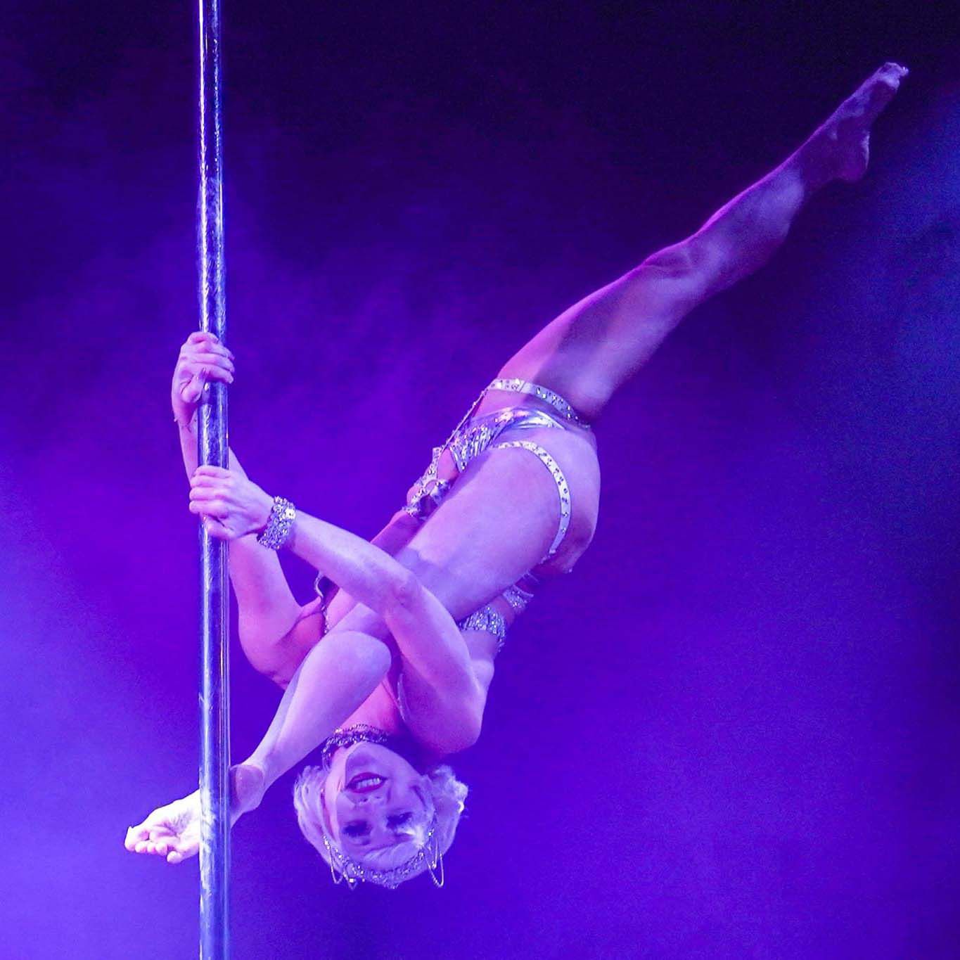 For something lighter, she also offers opera pole comedy acts as well as more uptempo selections in aerial hoop depending on the needs of the show