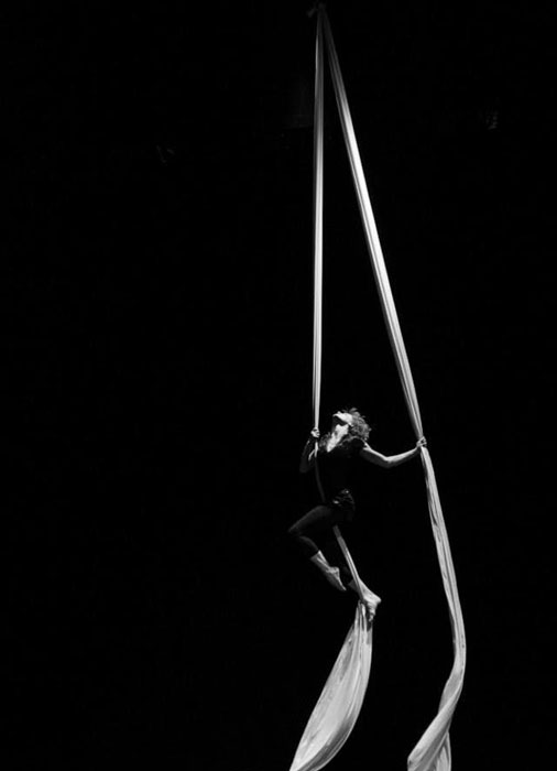 The highly experienced aerial silks performer has been providing her visually captivating aerial shows for a wide range of events in France for several years and has even more experience within the entertainment industry. Starting with classical dance studies in Tours, she relocated to Paris for a professional career as a dancer and vaudeville artist. Now based in Nantes, She combines the gracefulness of classical dance with elegant aerial silks making her more of an aerial dancer than an acrobat.