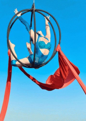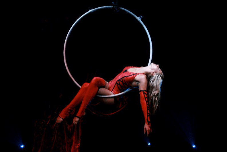 Each act is adapted to suit each venue and event depending on the height available; ariel hoops can be used in venues with lower ceiling height as well as high ceiling venues and motor or a pullie system can be used to lift the hoop up and down during the routine adding more movement and excitement to the performance.