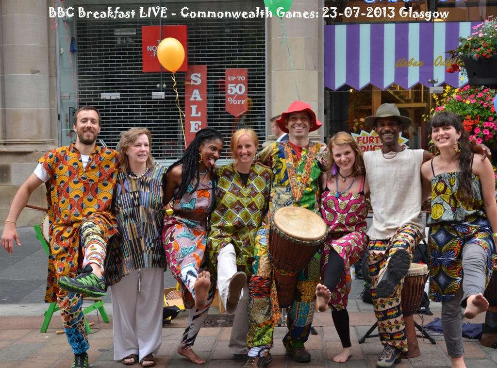 This African percussion and dance group based in Glasgow have been performing together for over 10 years. They play, and dance to the fantastic and diverse rhythms and songs of traditional West Africa (mainly from the Mandigue culture). The music is played on Djembe and Dundun drums as well as a variety of other percussion instruments. They produce a fascinating collage of rhythms originally played during celebrations (such as religious occasions, harvests or victories), work and initiation rites. The Dance and the music are inextricably linked, and are an integral part of the culture and social structure.
