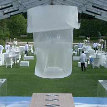 Perfect for corporate events, product launces or any occasion where the WOW factor is desired, our wave sculptures are beautiful, innovative and extremely relaxing to witness. This is art at its finest as waves of fabric are created above a parallel series of fans which can also be performed on a stage for a grander effect or without a stage as an intricate element to add to the room. Our act is customisable as clients can choose the colour of the silks, music and how big or small they wish the air sculpture to be.